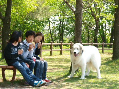 もう息子がリード持てるようになったのですが、どうやら引っ張るようで、転んでいましたね(笑)