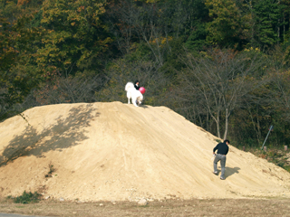 ジャンプここは、毎年夏バイクのイベント会場だった場所で、バイクのジャンプの着地台があるんです。