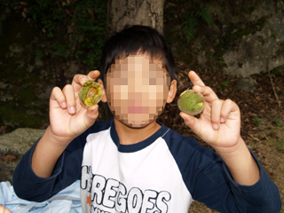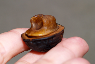 私たちが食べているクルミ(パンの中など)は、全て外国産でして、2周りぐらい大きなクルミで、国産はこんな感じなんですよ。