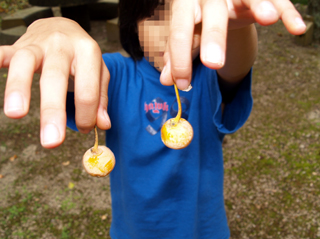 クルミを30個ぐらい取って、次は銀杏の木へ。
