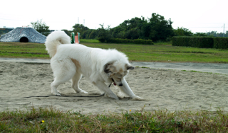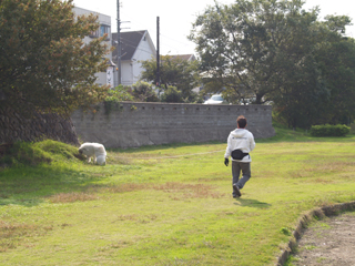 いつもは、ワンが沢山いるはずなのに、だーれもいない。まぁ、貸しきり状態ということで、ロングリード?で、ランラン玲