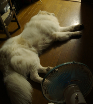 散歩から帰ると、飯も食わず、一番涼しい場所で涼んでご覧の通り。飯食わないと倒れるぞ〜・・まぁ500gぐらいは食べてるので大丈夫でしょ。