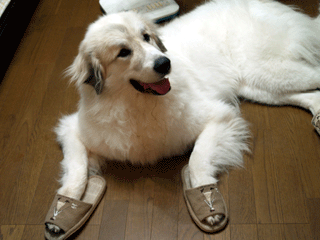 ・・・クツずれ!ですか?! やっぱり素足が一番?なんでしょうね。しかし、○十年後の世の中は、ペットグッズも進化して、ありえなくはないですね。必ず履いていたりして。