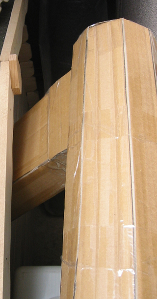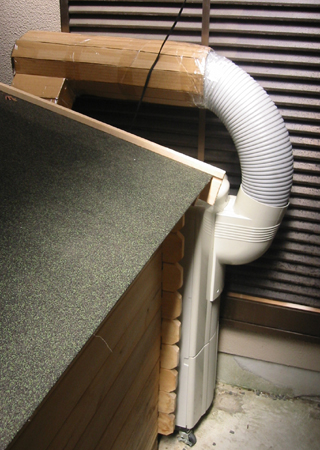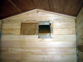 0526-2シェリーの小屋はかなり大きく、小屋の後ろの窓からダクトをダンボールで強引に作って差し込みました連