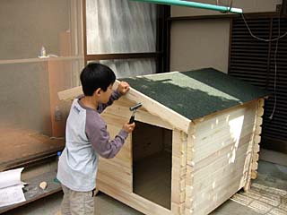 時間もあまり無いので、急いでいると子供が「手伝うよ!」と金づちコンコン♪