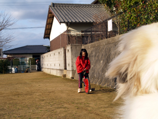 一輪車 投稿日: 2007 年 2 月 25 日 投稿者: sherry-papa 子供が正月のお年玉で一輪車を買いました。 何故今頃?と思いながら、3980円で購入。 学校で少しは乗っているみたいですが、公園で猛特訓!転びながら、20mほど行けるようになりました秊 まぁその姿を、シェリーと一緒に眺めておりましたが、シェリーは何を考えているんでしょうね。 少し肌寒い1日でした。 どうみても老けた青年・少年?にしか見えん秊 眉間にしわが入っているようにも見えるし怜