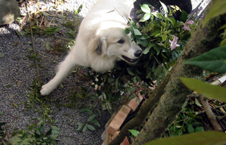切った枝を下に放っていたのですが、下でシェリーが食っておりました寧
