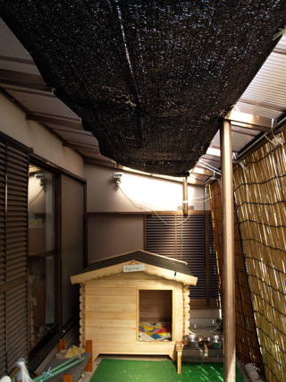 ついでに計画していた遮光ネットもつけちゃいました。庭は南側なのでけっこう日当たり良好