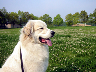 シェリーの満面の笑み!って感じでしょうか。白つめ草がいっぱい咲いていました