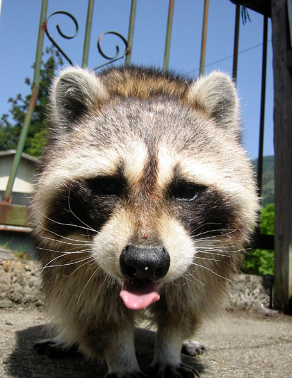 ツーリング途中で一休みしていたら「ん?狸?」と思って良くみたら”アライグマ”でした。